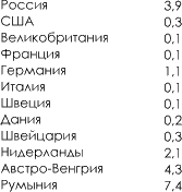 Доля евреев в общей численности населения некоторых стран в начале XX века (%)100