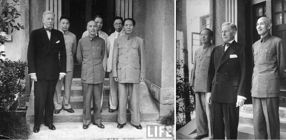 Для того, чтобы сводить и мирить китайских "националистов" с китайскими же "коммунистами" следовало сводничать и примирять. Занимался этим человек по имени Патрик Харли, о котором я когда-то в своих записках уже упоминал. Вот здесь он как раз этим и занимается, посредничая между Чаном и Мао: