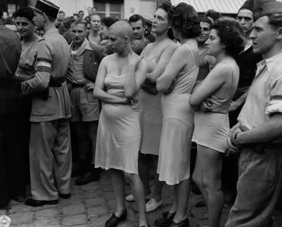 Эти несчастные сожительствовали с "бошами". В Париже толпа ловила и забивала насмерть проституток, ну как же! ведь эти паршивки продавали себя немцам за деньги! То, что Франция была фактически союзницей Германии и то, что всю войну вся Франция работала на Германию и кормила Германию и получала за это именно что деньги, оставалось при этом "за рамками". Между прочим, коммунисты пытались как-то прекратить эту омерзительщину, но де Голль был привезён во Францию именно для того, чтобы противостоять послевоенной "коммунистической угрозе", Сопротивление активно выдавливалось из всех самоорганизующихся местных органов власти и де Голль, изначально позиционировавший себя как "французский националист", считал, очевидно, что коллективную вину лучше всего канализировать на кого-то другого, и в роли этого другого естественнейшим образом оказались самые слабые члены общества.