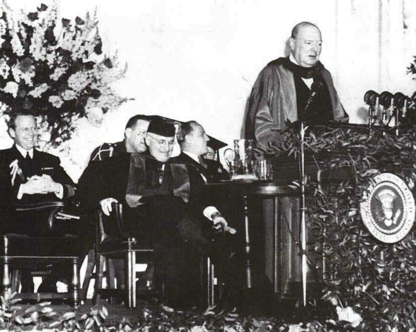 Многие (но далеко не все) историки назначают датой начала Холодной Войны 5 марта 1946 года, когда была произнесена речь Черчилля в Фултоне, крошечном городке с населением в семь тысяч человек, где расположен Вестминстерский Колледж, куда Черчилль был приглашён для получения почётной степени вместе с президентом Труманом, которого колледж удостоил той же чести. При этом никто не удосуживается обратить внимание на ту малость, что в марте 1946 года Винстон Черчилль уже почти год как не только не был премьер-министром, но и не занимал вообще никаких государственных постов, а был он выражавшим своё личное мнение частным лицом, не обладавшим никакими официальными полномочиями.