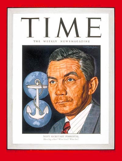 В мае 1944 года Джеймс Форрестол поднялся по служебной лестнице ещё на одну ступеньку, сменив на посту Secretary of the Navy умершего от сердечного приступа Фрэнка Нокса. Повышение замминистра до ранга министра помимо всего прочего означало и радикальную метаморфозу по превращению жёсткого практика-хозяйственника в чистого политика. Уже зная, чем вся эта история закончилась, можно сказать, что для всех было бы куда лучше, если бы Форрестол так и остался бы в замах, "в тени". Но судьбе было угодно, чтобы где-то в коридорах власти упал, схватившись за грудь, Нокс, а между тем шёл 1944-й и, как всем известно, коней во время переправы не меняют, а тут и брод был шириною в Атлантику, и рабочая лошадка из Форрестола была хоть куда, так что как-то само собою вышло, что другие кандидатуры на пост Секретаря по делам Флота даже и не рассматривались.