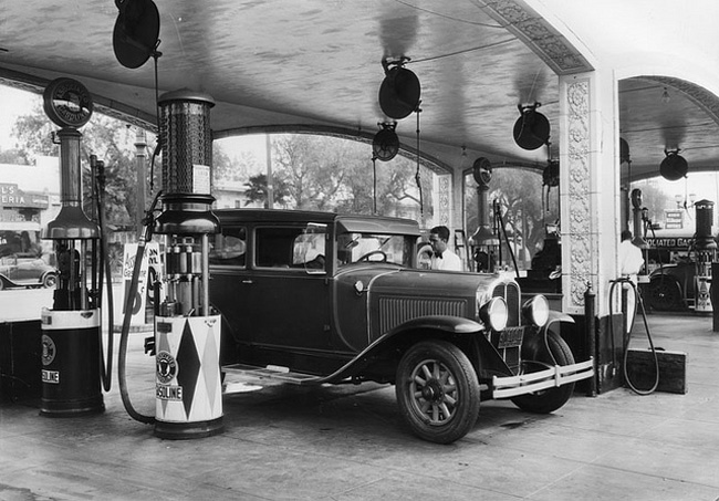 И всё это при том, что ни в одном европейском государстве доля нефти в общем энергобалансе не превышала 10%. Америка была единственным государством, где эта доля составляла свыше 30% или, другими словами, именно во внутреннем потреблении нефть для США значила гораздо больше, чем для остальных и именно это позволяло американцам (или даже заставляло их) куда глубже понимать, в каком направлении движется мир. Да и попробуй быть непонятливым, когда у тебя в 1921 году было 12000 бензозаправочных станций, а всего через восемь лет их стало 143000. Сто сорок три тысячи gas stations. Вот таких: