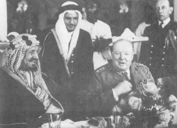 Куда конь с копытом, туда и те, кто с клешнями. Через три дня после встречи с Рузвельтом состоялась встреча ибн Сауда с Черчиллем. Там всё вышло нехорошо. Саудия уходила и Англия ничего с этим поделать не могла: