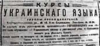 Одно из первых рекламных объявлений на украинском языке в Харькове