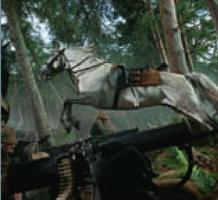 Необходимо понимать, что когда лошади попадают в армию, их надо тренировать особым образом. И такая тренировка на самом деле занимает гораздо больше времени, чем мы это можем показать в нашем фильме. Зрителю нужно осознать, что дрессуры в реальности гораздо больше, чем проходит перед его глазами. Я хотел показать учебную кавалерийскую атаку как главный финал такой военной тренировки коней. И еще я хотел показать, как Джоуи (конь Николса) и Топторн (конь Стюарта) становятся соперниками. Соперниками в том же самом смысле, как соперничают Николс и Стюарт: чей конь быстрее доскачет до цели в результате атаки. В этом отношении это одна из самых важных сцен в фильме, потому что она демонстрирует не столько соперничество Николса и Стюарта — более важно для меня в ней то, что здесь как соперники сходятся кони, Топторн и Джоуи.