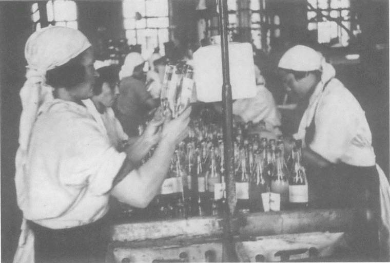 Фото 12. Работницы ликероводочного завода разливают водку в бутылки. 1937 г.
