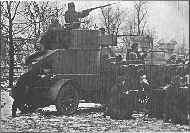 Красногвардейцы у бронеавтомобиля, захваченного у юнкеров
