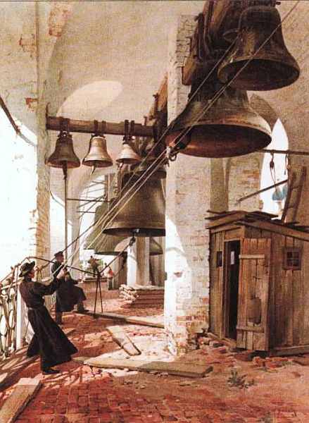 Много смуты было на Руси и в церковных делах в это время. Русский народ был очень набожен. Иностранцев, заезжавших в русские земли, всегда поражало обилие церквей. Строились они беспрестанно. Постигала какая-либо беда город с его областью: бездождие, голод, мор, — жители спешили молитвою отвратить беду, ставили по обету «обетные» церкви, воздвигали их иногда в один день, даже в одно утро, и в тот же день освящали. Жители города или селения сговаривались на сходе соорудить такую «обыденную» церковь, шли в лес, рубили бревна, свозили их, а иногда из усердия на плечах сносили их на место и всем миром строили церковь во имя дневного святого. Если беда не прекращалась, строили новую обыденную церковь другому святому и так далее. Во всех городах было так много церквей, что иногда нечем было их содержать, недоставало на все церкви причта, и приходилось отыскивать свободных священников, которых и призывали по временам служить в тех церквах. По главным храмам часто называли и города. Так, Новгород назывался городом Святой Софии; Псков — Святой Троицы; Московская область звалась землею Богородицы (по Успенскому собору в Москве). Река Угра на границе с Литвой называлась поэтому поясом Богородицы и тому подобное. Сильно заботились предки наши также об украшении храмов. Красивые колокольни, «доброгласные и многошумные» колокола, богатые, блистающие золотом и драгоценными камнями оклады на иконах очень занимали благочестивых русских людей.