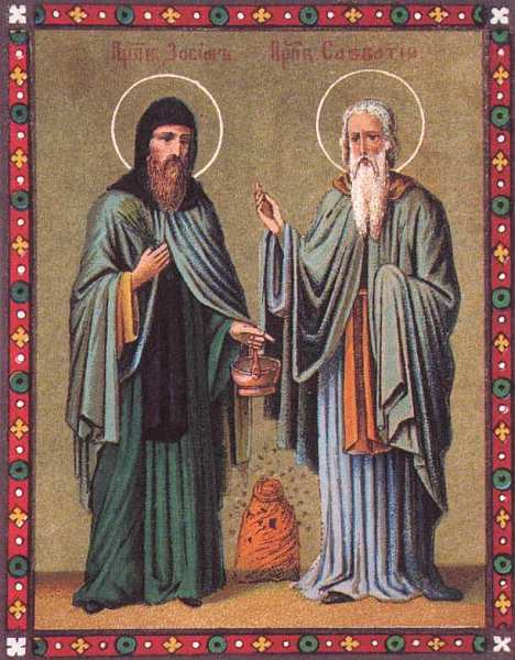 Преподобные Зосима и Савватий Хромолитография Е. Фесенко
