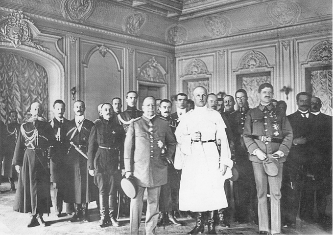 Гетьман Павло Скоропадський на урочистому прийнятті іноземних дипломатів. 1918 р.