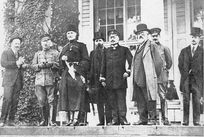 Українська делегація в Берліні. У центрі — Гетьман Павло Скоропадський, товариш міністра закордонних справ О. Палтов