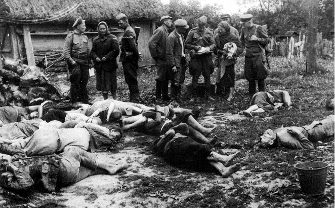Тіла українців, убитих відділом «Народових Сіл Збройних» (НСЗ) під командуванням Станіслава Секули ? «Сокола» в селі Верховини. 6 червня 1945 р.