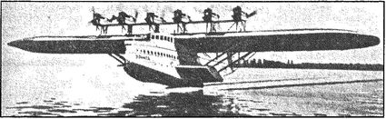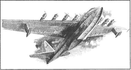 Удивительный аппарат оставила нам немецкая авиа- индустрия конца 1920-х годов, перебазированная в связи с ограничениями Версальского договора в Голландию, Америку, Швейцарию и Данию. Речь идет о гидросамолете фирмы «Дорнье». В 1924 году, еще в пору полного действия суровых ограничений, Клод Дорнье вынашивал идею гигантского самолета — летающей лодки, которой были бы по плечу рейсы между континентами. Два года ушли на разработку проекта, и вот 19 декабря 1927 года началась постройка D-X — лодки-исполина, изумившей впоследствии весь мир. 12 июля 1929 года аппарат был спущен на воду, и 20 октября со 169 пассажирами на борту поднялся в часовой полет под Баденским озером. Силовая установка этого гиганта состояла из 12 двигателей «Бристоль-Юпитер» английского производства (мощностью по 450 л. с.), установленных тандемом в шести надкрыльевых мотогондолах. Так как воздушные винты находились непосредственно над поверхностью крыла в районе задней и передней кромок, гондолы были подняты на подкосах для обеспечения требуемого зазора между винтами и поверхностью крыла.
