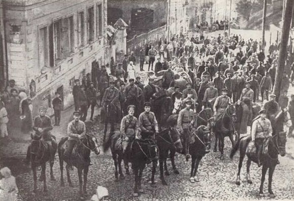 Писатель Карлис Фимбер так воспроизводит вступление латышских стрелков в Могилев: