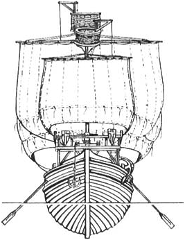 Значительным шагом вперед явилась установка второй, наклонной в сторону форштевня мачты. Более узкий ее парус позволял ходить при боковых ветрах.