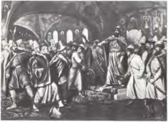 «Иван III разрывает ханскую грамоту с требованием дани». Картина А. Кившенко, 1879 г.