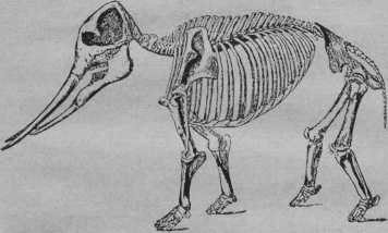 В отложениях четвертичной эпохи, которая замыкает ледниковые периоды, и в отложениях дилювийской эпохи, которая следовала за последним всеобщим оледенением земного шара, и непосредственным продолжением которой является наше время, мы наталкиваемся на громадных толстокожих, а именно на мамонта мастодонта (см. рис. 26), окаменелые остатки которого мы еще теперь находим часто в тундрах Сибири.
