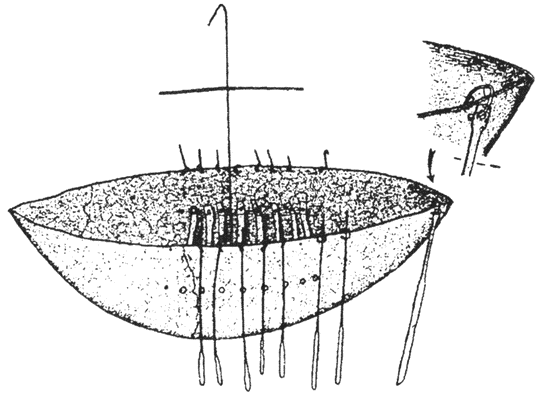 Рис. 35. Кельтский 18-весельный корабль. Реконструкция И.И. Черникова по модели ирландского судна I в. н.э.
