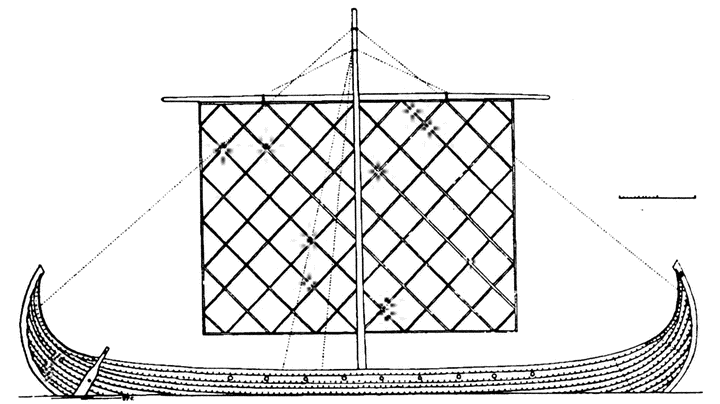 Как видите, венетские суда были уже в те времена весьма приспособлены как к плаванью в океане, так и по рекам, благодаря уплощенному килю. Надо сказать, что описание конструкции этого корабля напоминает древнерусскую ладью и скандинавский драккар, хотя необходимо отметить, что парус у скандинавов появился только за столетие до начала эпохи викингов, что отмечают сами скандинавские исследователи, то есть в лучшем случае около 700 года{163}.