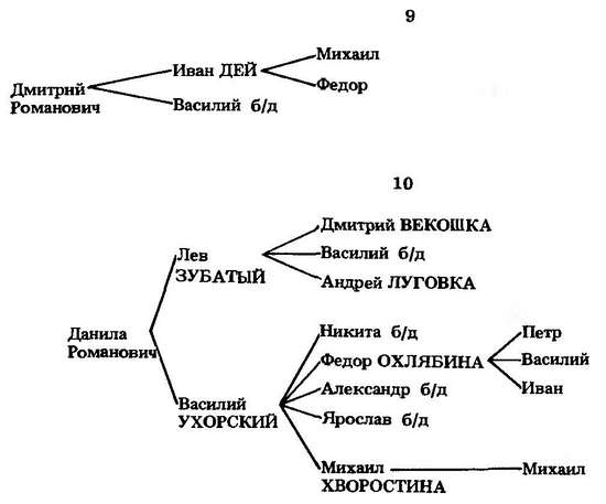 У брата Льва Зубатого Василия Ухорского было пять сыновей. Род пошел от второго — Федора Охлябины (Охлябинины)[519] и от младшего — Михаила Хворостины (Хворостинины).[520]