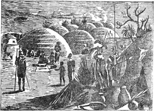Селение зулусов в Африке. В больших хижинах живут целые роды или части рода.