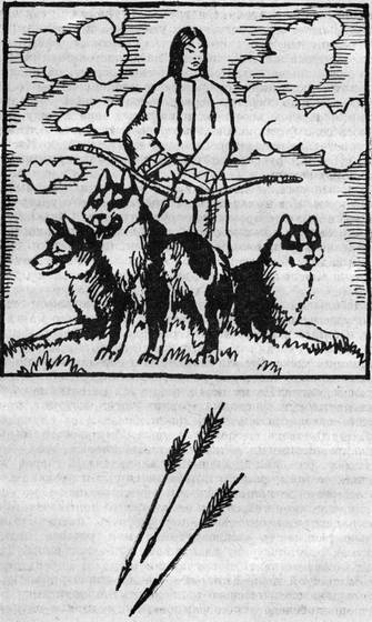 Вновь послышался зловещий посвист. Дахча упал на дно лодки и вдруг услышал лай собак. Лодка огибала мыс, и впереди виднелся берег с восьмиугольным аилом под тремя кедрами. У входа в жилище стояла девушка, рука ее держала лук с вложенной стрелой, но она смотрела не на реку, а на берег, откуда в Дахчу летели стрелы и где не смолкал заливистый лай.