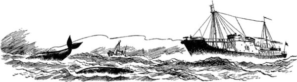 Но вот этот момент наступил. Гарпун, похожий на пику, брошен сильной рукой. Его наконечник с загнутыми зубьями прочно засел в туше кита. Прикрепленный к гарпуну канат удерживает раненое животное. Кит оказывается как бы на буксире. Но обычно буксировщиком был не китобойный вельбот, а наоборот, — кит. Так и таскал он за собой смельчаков-китобоев до тех пор, пока не испускал дух от ружейных выстрелов. Иногда канат обрывался и долгая изнурительная борьба с китом кончалась впустую. А бывало и хуже — раненый кит бросался на шлюпку и одним ударом хвоста переворачивал ее. Много отважных китобоев нашли свою смерть в океанской пучине.