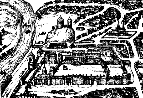 Панорамный план г. Вильно. Раскрашенная гравюра XVI в.