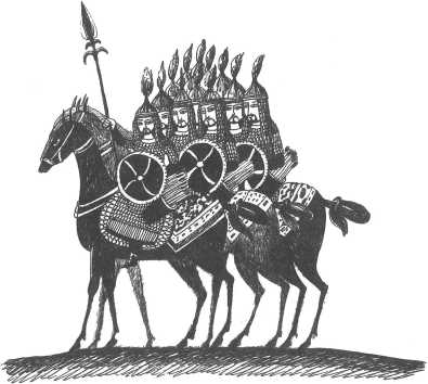 С ростовскими ратниками на коломенском смотру стояли, видимо, и две ростовские амазонки-всадницы, одетые в воинские доспехи… Одна из них была дочерью князя Андрея Федоровича. Спустя столетия, во время войны с Наполеоном, подвиг Надежды Дуровой, которая, переодевшись в гусарское платье, пошла воевать с французами, стал известен всем. Немало восхищался им Пушкин. К сожалению, девица-кавалерист, по-видимому, ничего не слышала о своих предшественницах, которые были участницами Куликовской битвы. Как впоследствии и Дуровой, им пришлось скрывать под мужским платьем и доспехами свой женский облик.