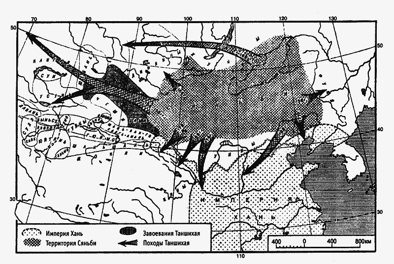 Схема завоевательных походов Таншихая