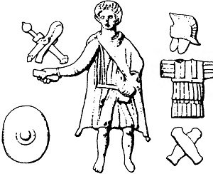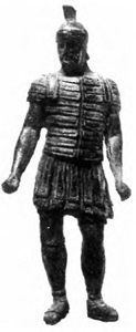 Бронзовая статуэтка солдата (III в.) (Feugere M. Les armes.. P. 129)