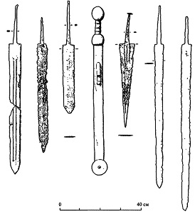 Различные типы мечей, использовавшиеся в первой половине III в. (Bishop М. С., Coulston J. С. N. Roman Military Equipment… Р. 127)