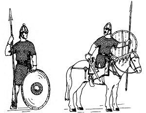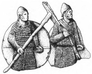 Пехотинец и всадник с секирой. Рис. И. В. Кирсанова