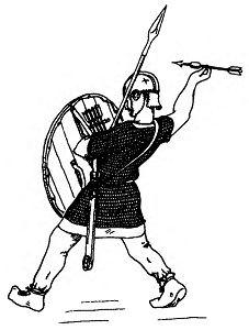 Воин с фустибалом. Рис. И. В. Кирсанова