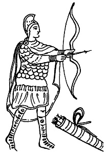 Изображение лучника в манускрипте Virgilius Romanus (V в.) (Stephenson L P. Romano-Byzantine Infantry Equipment. P. 124)