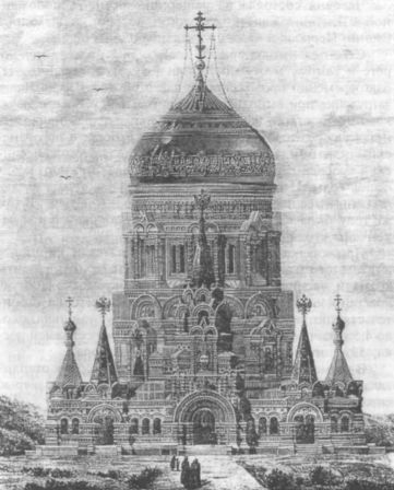 Строительные материалы подвозились по железной дороге к самому месту постройки по запасному пути, заблаговременно проложенному для этой цели. Главнейшее затруднение при выполнении строительных работ заключалось в недостатке воды, которую приходилось привозить издалека и которой требовалось при работах с портландским цементом очень много. Вырытый для этого абиссинский колодец глубиной 76 сажень не давал нужного количества воды. И все же в 1892 году была закончена кладка часовни и все наружные работы в храме и в часовне. В том же году была сделана внутренняя штукатурка стен и закончены столярные работы.