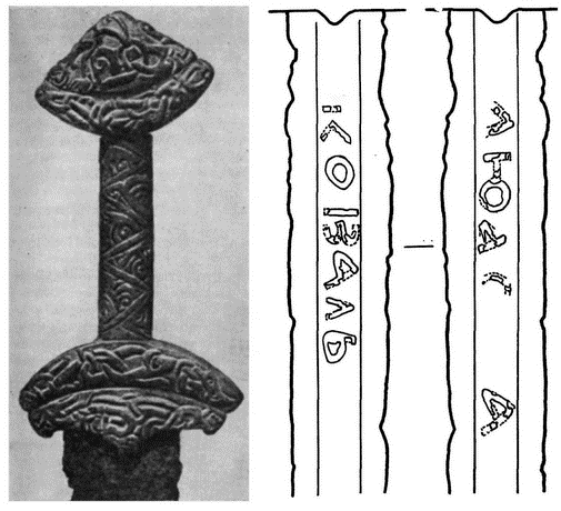 Меч, изготовленный русским оружейником. Надпись на клинке: «Людота коваль»