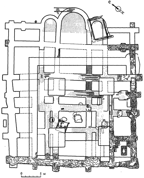 Десятинная Успенская церковь в древней части Киева 989–996 гг. План. Под фундаментами — дружинные могилы IX–X вв.
