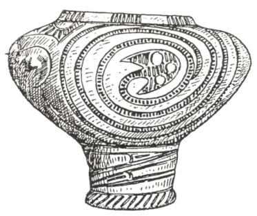 Рис. 136. Ранньотрипільська посудина із зображенням змія (Олександрівка).