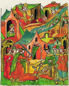Убийство великого князя литовского Сигизмунда Кейстутовича в 1440 г. Миниатюра Лицевого летописного свода