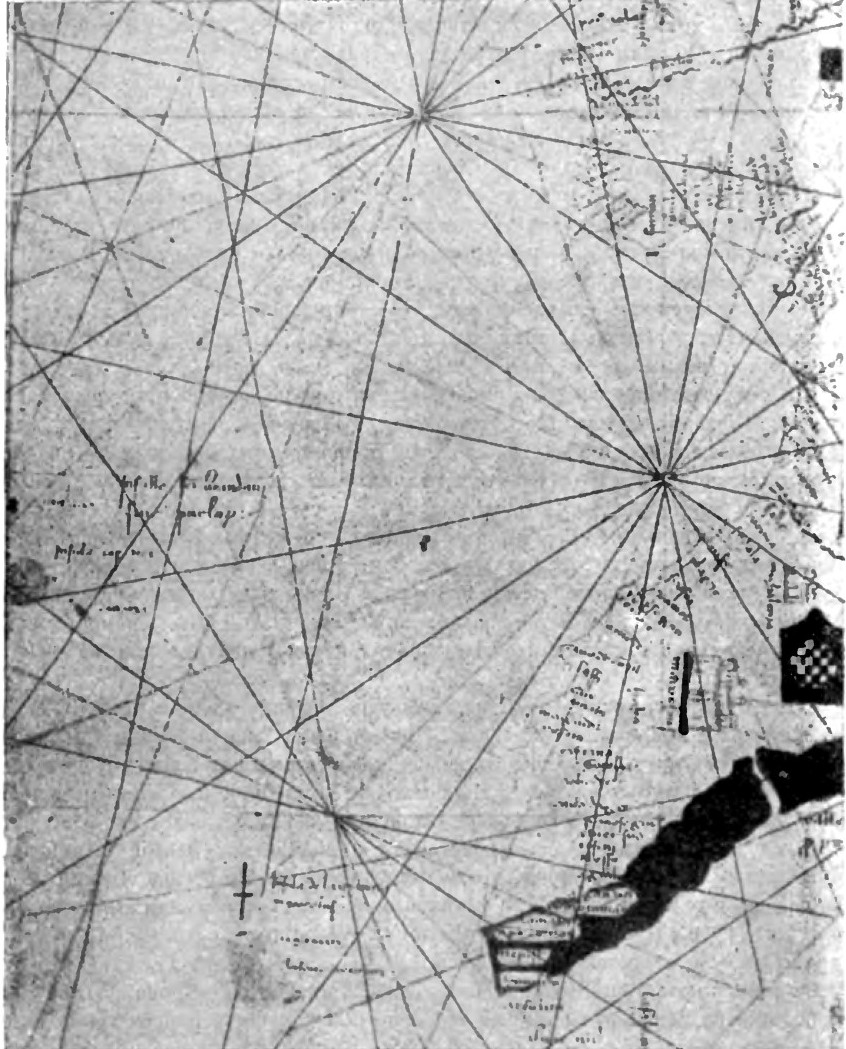 Главная причина чудовищной путаницы на морских картах XIV—XV вв., а частично и XVI в. в количестве, положении и названиях островов Атлантики, путаницы, отражающейся на исследованиях и по сей день, заключалась в следующем. Картографы не сразу распознавали идентичность различных островов, вторично открывавшихся начиная с 1312 г., с островами, названия которых восходили к Плинию и Птолемею и были заимствованы из литературных источников древнего мира. Случилось так, что перепутанные античные и новые названия островов в конечном счете были все вместе помещены в Атлантическом океане усердными картографами. Вот почему уже к 1350 г. на картах фигурировали названия гораздо большего числа островов Атлантического океана, чем их было открыто до того времени или чем их имелось в действительности к западу от Гибралтарского пролива. В гл. 147 мы подробнее остановимся на том, к каким нелепым заблуждениям и ошибочным толкованиям, не искорененным и по сей день, привели многочисленные фантастические надписи на старинных картах.