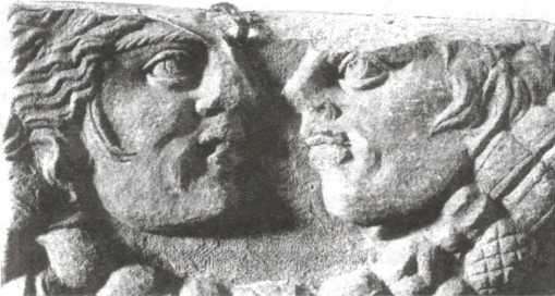 Рис. 92. Фрагмент стінки мармурового саркофагу із зображенням подвигів Геракла. Херсонес, III ст.