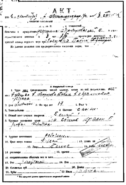 12. Первая страница Акта о подъеме мертвого тела Павлика Морозова.
