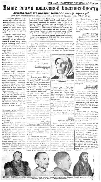 14. Сообщение о суде над убийцами Морозовых в «Пионерской правде». Ноябрь 1932.