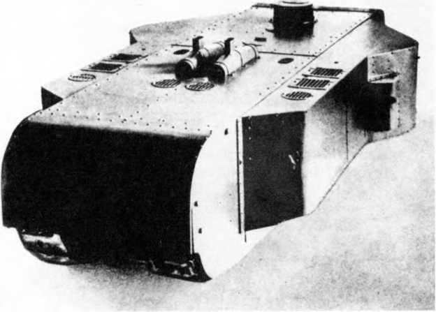 Удлиненный конец вала сцепления соединялся с пусковой рукояткой, выведенной в боевое отделение. Вооружение (орудие или один пулемет) — устанавливалось во вращающейся башне. Нетрудно заметить, что LK-III выполнялся по той же компоновочной схеме, что и французский легкий «Рено» FT-17, разработанный годом раньше. Р. Крюгер утверждал, что «в Германии неприятельские формы малых танков были совершенно неизвестны». Однако разработка LK-III велась явно под влиянием «Рено» FT, с которыми германские войска встретились в мае 1918 г. И все же надо отдать должное германским конструкторам, успевшим оценить преимущества схемы компоновки, позднее признанной «классической», и быстро «вписать» в нее уже разработанную машину. Планировалось оснастить танк радиостанцией. Но до постройки натурного образца дело уже не дошло. Тринадцать фирм представили проекты «тяжелых штурмовых танков». Из них наибольшего внимания заслуживает проект «Oberschlesien» («Верхняя Силезия»), разработанный в середине 1918 г. фирмой Oberschlesishe Huttenwerke («Верхнесилезский металлургический завод»). Проект представил член VPK капитан Мюллер. Танк должен был иметь схему компоновки с передним расположением отделения управления, средним — боевого и задним — моторно-трансмиссионного. При этом основное вооружение — 57-мм пушка — размещалось во вращающейся цилиндрической башне, а два пулемета — в передней и задней малых башнях. Карбюраторный рядный двигатель авиационного типа AS3 «Аргус» с водяным, развивавший мощность 180 л.с. при 1400 об./мин, при проектной массе машины около 20 т обеспечил бы ей удельную мощность 9 л.с./т. Запас бензина должен был составить 1 000 л — вдвое больше, чем у A7V. Оригинальной чертой ходовой части было среднее положение приподнятого ведущего колеса — оно зацепляло верхнюю ветвь гусеницы и было прикрыто броней. Такое расположение ведущего колеса не было новостью — его можно встретить, например, в американском патенте Си. Л. Бест от 1915 года. Оно выгоднее с точки зрения защиты не только от поражения огнем противника, но и от загрязнения, ударов при движении, сокращения длины трансмиссии, однако количество точек зацепления гусеницы ведущим колесом оказывается намного меньше. Передние и задние направляющие колеса были приподняты над фунтом, гусеничный обвод заметно выступал за пределы корпуса, что должно было улучшить проходимость машины. Подвеска ходовой части — упругая. Стоит отметить наличие смотрового купола (башенки) в крыше основной башни и большие углы наведения орудия по вертикали, что уменьшило бы «мертвые зоны» вокруг машины. Проект привлек внимание Ставки, распорядившейся 5 октября о постройке двух опытных образцов. Для ускорения работ неделю спустя VPK приняла решение строить машины «Oberschleisen II» на шасси типа «Холт» с задним расположением ведущего колеса, но и этого не удалось сделать — проект остался нереализованным. В проекте «Oberschleisen» уже проявились черты средних и тяжелых танков для «прорыва укрепленных районов», которыми будут заниматься конструкторы разных стран в 20-30-е годы, сравнительно тихоходных машин высокой проходимости с многоуровневой установкой вооружения в нескольких башнях. Определенные следы компоновочных решений «Oberschleisen» можно увидеть, например, в разработанном через полтора десятилетия германском среднем танке Nb.Fz. Тогда же, в октябре 1918 г. 