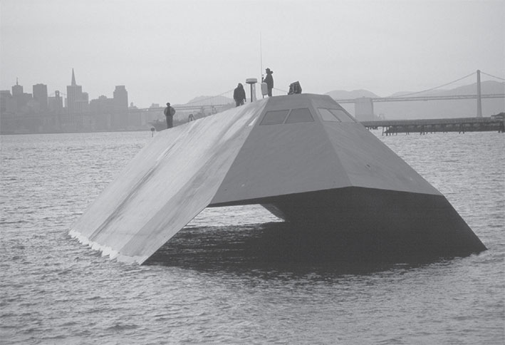 «Десять лет выжидания прошло, прежде чем журналистам продемонстрировали угловатую физиономию тайного самолета, способного обыграть радары, – писал по этому поводу журнал «Science and Vie». – Скрытому кораблю удалось остаться невидимым чуть меньший срок. Судно, также обязанное своим появлением на свет фирме “Локхид”, удалось прятать в плавучем доке, стоящем на якоре перед Ред-вуд Систи, в бухте Сан-Франциско, 8 лет…»
