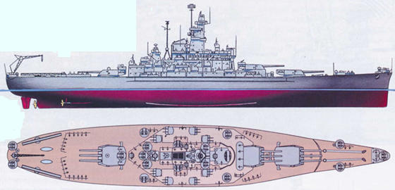 Вооружение: 9 406-мм орудий, 20 127-мм универсальных пушек, 16 40-мм автоматов.