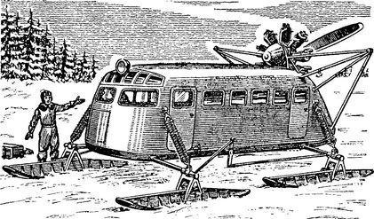Впрочем, в зимнее время для России мотоцикл никак нельзя назвать идеальным транспортом. Огромные просторы при слабой сети дорог, суровые климатические условия нашей Родины давно ставили перед конструкторами задачу создания надежного и скоростного зимнего транспортного средства. Надо ли удивляться, что сразу же вслед за появлением компактных двигателей внутреннего сгорания конструкторы начали приспосабливать их к специфическому зимнему бесколесному типу экипажа. Так на свет появились аэросани — изобретение сугубо русское. Первые такие машины были построены в начале века и представляли собой легкие прогулочные, спортивные экипажи. Авторами конструкций были инженеры С. С. Неждановский (1904 г.) и А. Д. Докучаев (1907 г.). Появление нового вида транспорта вызвало большой интерес: только за последующие 5 лет в России создали более полутора десятков разновидностей аэросаней. А в 1912 году на знаменитом Русско-Балтийском заводе начали серийный выпуск аэросаней по заказу Военного министерства для транспортных целей. Мало кто мог подумать тогда, что всего через пару лет эти легкие, хрупкие на вид машины, по сути дела не вышедшие еще из стадии эксперимента, вступят в бой. Тем не менее так и случилось.