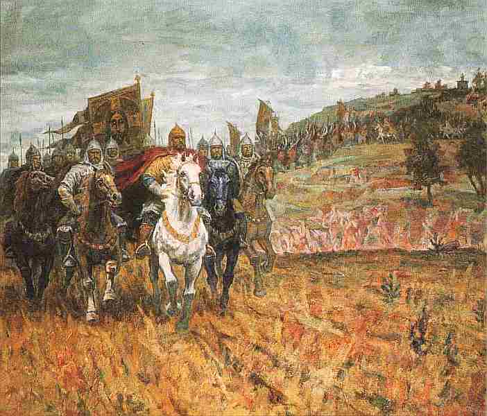 В начале июля царь выступил в поход. Всюду на пути он посещал церкви, монастыри, принимал благословение от духовенства; во Владимире долго и усердно молился пред гробницей своего прародителя — святого Александра Невского.