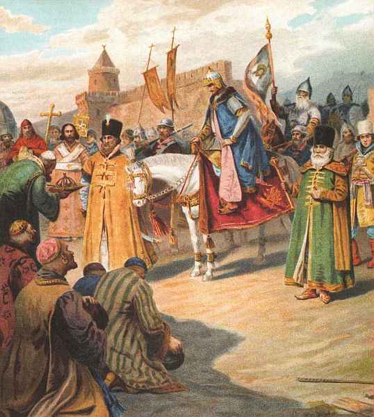Царь, окруженный своими воеводами, въехал в Казань. Несколько тысяч православных, томившихся в казанской неволе и теперь освобожденных, кланялись царю в землю и кричали: